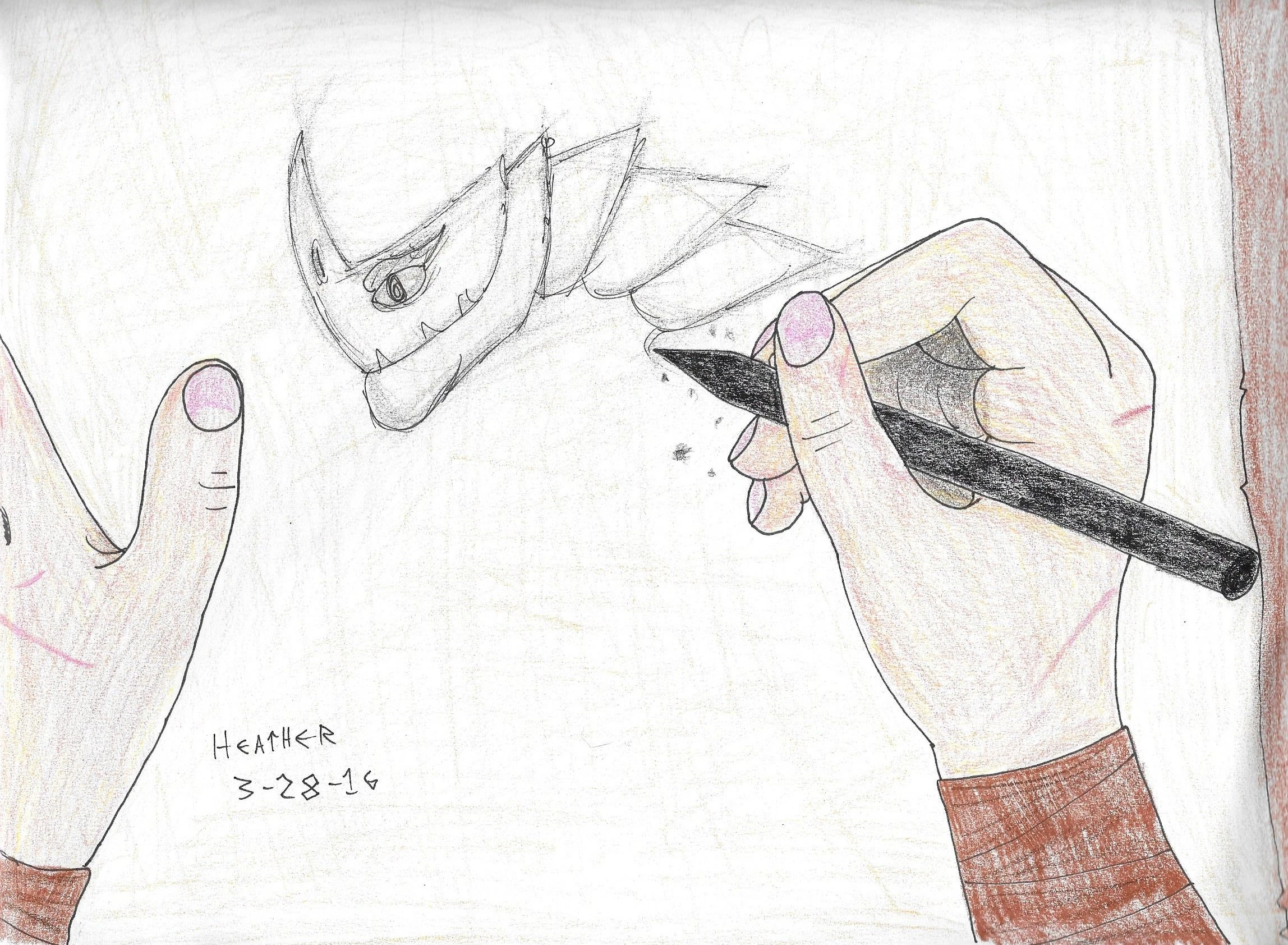 I finished just in time, as the voices of the Vikings were closer now, almost right outside. I sat down near the dragon, hoping they didn't know about the cave. They apparently didn't, as they walked right past, swords and axes clanking against sheilds. The dragon growled low in her throat.